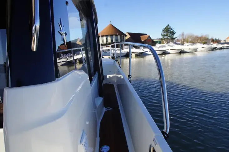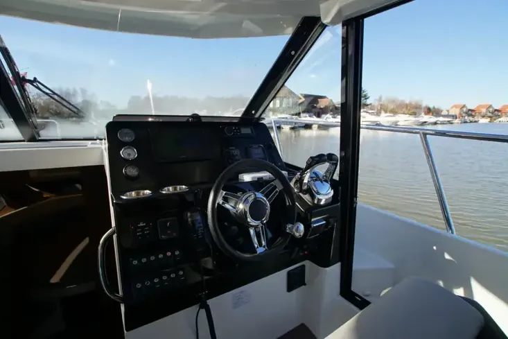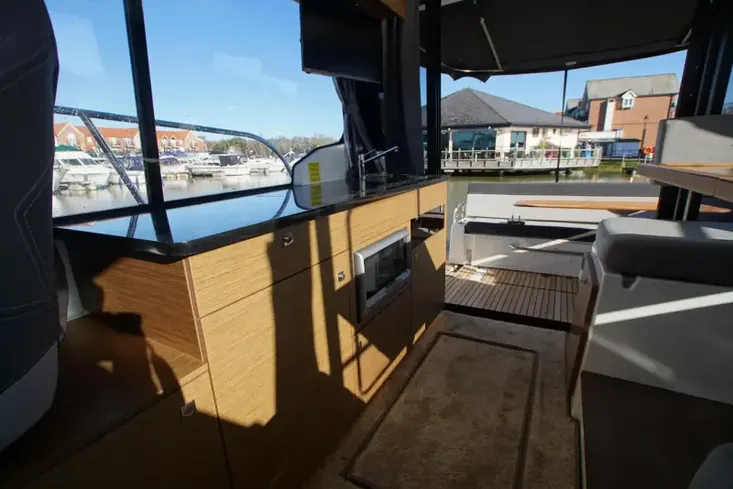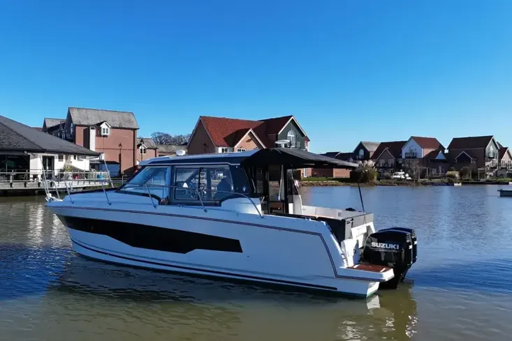 Jeanneau Merry Fisher 1095, 2020 build and model year and equipped with twin Suzuki 300hp outboards which have only covered 43 hours!. The Jeanneau Merry Fisher 1095 offers 6 berths in three cabins along with a large cockpit for entertaining with family and friends. The vessel is a true all-year-round boat with extensive specification that includes: Premier Trim pack* Comfort pack* U-shape cockpit seating with table and sundeck conversion, Bowthruster, deck searchlight, Microwave, overhead lockers in galley, overhead lockers in forward cabin, carpet, teak bathing platforms and cockpit, Garmin GPSMAP 922 plotter, Fusion RA70N stereo system, flatscreen TV, Horn, front sundeck with lifting backrests, sunshade for forward sunpad, cockpit sun awning and aft closing kit, underwater lights, air conditioning and generator. Power polished, waxed and engines serviced in January 2026, will come complete with 3 month engine warranty. Available to view 7 days a week at Burton Waters Boat Sales in Lincoln. *PART EXCHANGE AVAILABLE*